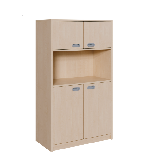 Die funktionelle und zugleich sehr stabile 4türige Schrankkombination wird mit jeweils 2 oberen und unteren Türen in verschiedenen Höhen und Breiten gefertigt. In den jeweiligen Höhen bilden Einlegeböden die Fächer, die auf verstellbaren Bodenträgern liegen und damit verschieden hohe Fächer einstellen lassen. Die speziellen Bodenträger verhindern das Herausrutschen der Böden. Die Schrankmitte wird von einem großen Fach dominiert. Die Korpusteile bestehen aus 19 mm dicker E 1-Feinspanplatte mit einer dekorativen Melaminharzbeschichtung, alle Kanten sind mit 2 mm - ABS-Sicherheitskanten ausgeführt. Das Dekor der Korpusteile kann ausgewählt werden, die Fronten können ebenfalls separate Dekore bzw. Farben erhalten. Überzeugen Sie sich von unserer Fertigung - für die dauerhafte und langfristige Nutzung bei Ihnen!