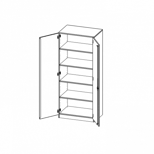 Alle Schränke werden aus melaminharzbeschichteter E1-Feinspanplatte gefertigt, die FSC zertifiziert und formaldehydfrei sind. Als Kanten verwenden wir besonders robuste 2 mm starke ABS Kanten, die unter hoher Temperatur fest verleimt werden. Bitte wählen Sie Ihr Wunschdekor aus unserer Dekorpalette aus. Die Einlegeböden sind im Raster von 32 mm verstellbar. Unsere hochwertigen Bodenträger verfügen über einen "Ausziehstop", so wird verhindert, dass Böden mit Inhalt darauf aus dem Regal oder Schrank rutschen können. Die Türen lassen sich dank 270° öffnender Scharniere an den Korpus anlegen. Sie sind mit einem Schloss verschließbar. An den Türen befindet sich eine Staublippe.