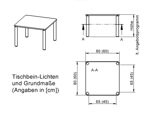 Die sehr stabile Schraubkonstruktion der Tischbeine unmittelbar unter der Tischplatte bietet maximale Beinfreiheit und ist somit auch für Rollstuhlfahrer geeignet.